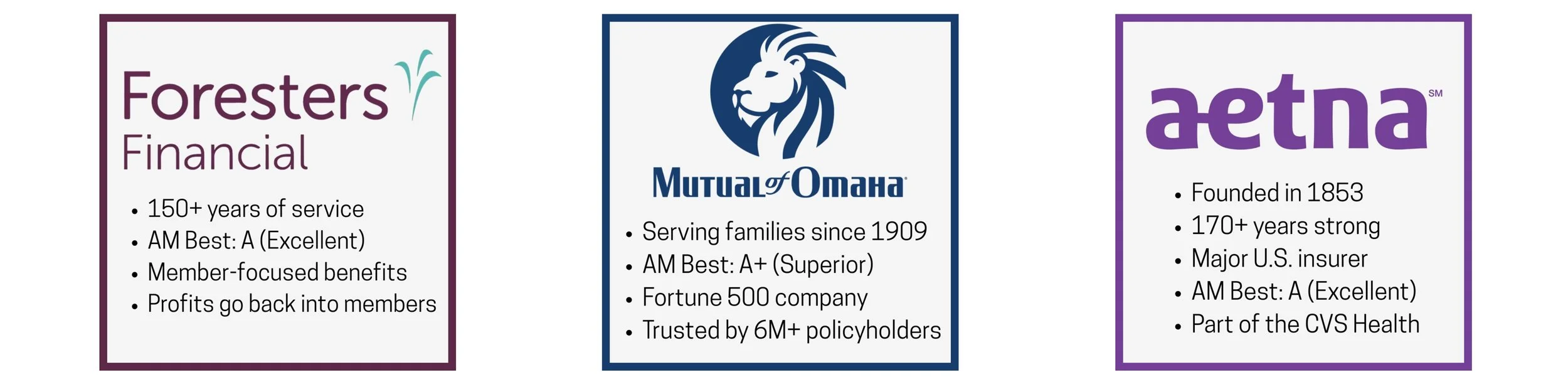That means you get reliable coverage from names you know and trust, backed by strong financial ratings and decades of experience.